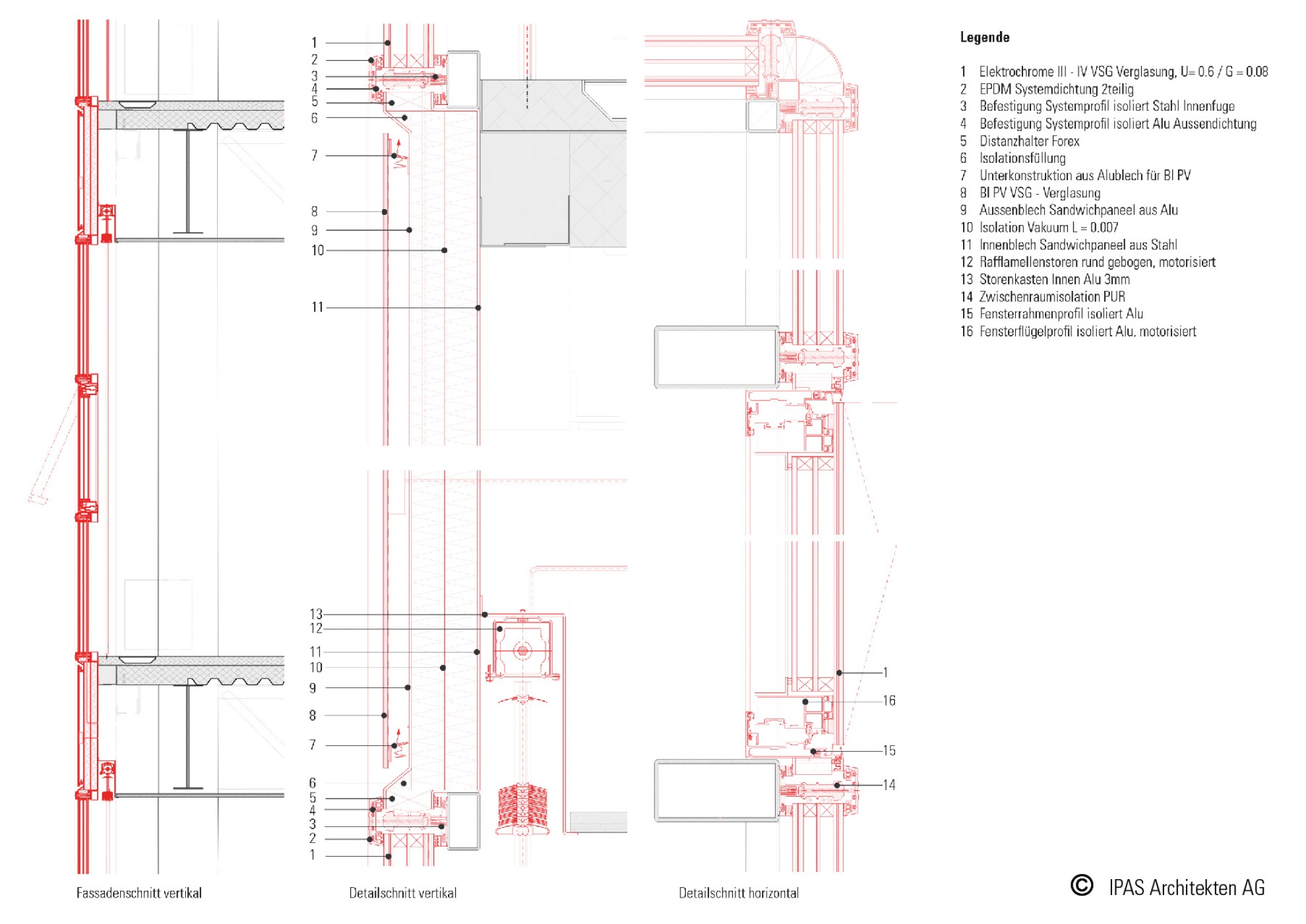 Bei der Evaluierung, welche Fassadenlösung für die Sanierung der denkmalgeschützten Bausubstanz des BBZ optimal ist wurden alle relevanten Kriterien einzeln ausgewertet (siehe Tabelle Beurteilungskriterien). Es zeigt sich, dass um eine sowohl funktionelle wie auch denkmalpflegerisch befriedigende Lösung zu erhalten nur 3 Varianten beurteilt werden können: 1 Doppelhautfassade mit Sonnenschutz und 2 Einfachhautfassaden mit Sonnenschutzverglasung SCG oder elektrochromatischer Sonnenschutzverglasung ECG. Die Orientierung der 3 Gebäude erlaubt gemäss SIA den Einsatz von SCG-Verglasung auf den Fassade NO und NW (niedrige Sonneneinstrahlung) und eine ECG Verglasung auf den Fassaden SO und SW (hohe Sonneneinstrahlung). Der architektonische Ausdruck mit seiner filigranen Fassadenkonstruktion wird gänzlich erhalten sogar in den verglasten Gebäudeecken. Das Grundkonzept der bräunlich eingefärbten Sonnenschutzverglasung wird gänzlich erhalten und entsprechend neu interpretiert mit den geforderten hohen G – Werten gemäss SIA. Die Sonnenschutzverglasung SCG und ECG stehen immer in Kombination mit dem für den architektonischen Ausdruck so wichtigen Blendschutzelement der weissen Rafflamellenstore. Durch die Verwendung einer Einfachhautfassade kann optional auch die Nutzung motorisierter Lüftungsflügeln in der Zwischensaison für eine natürliche Belüftung (Stosslüftung zwischen den Pausen und Kontakt mit Park) garantiert werden.Description: