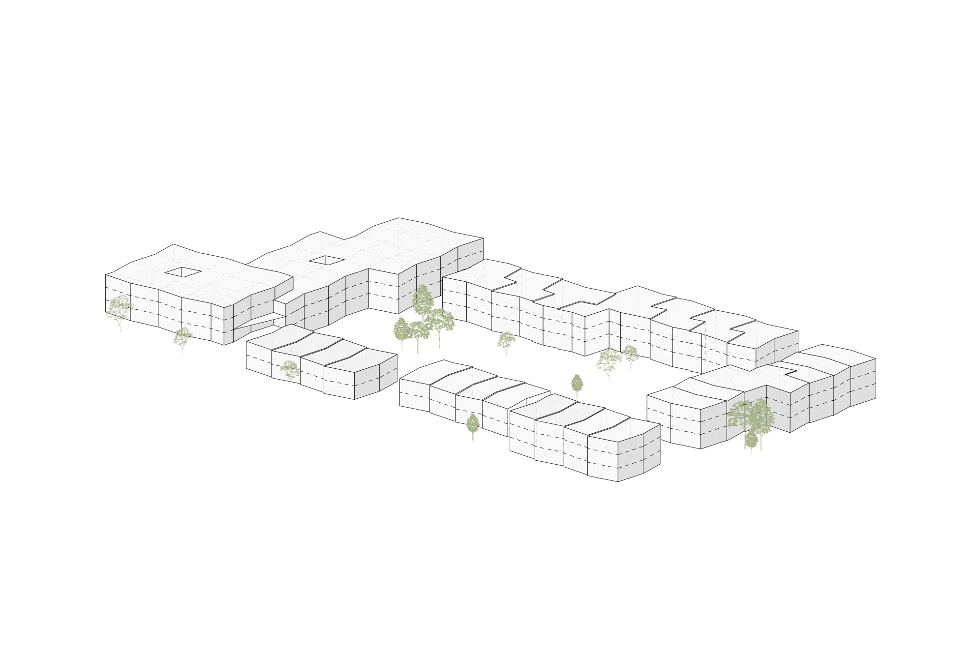 Die Wohnüberbauung besteht aus 6 Gebäudekomplexen in welcher sich 100 Wohnungen eingliedern. Insgesamt verteilen sich 43x 2,5 Zimmer Wohnungen, 28x 3,5 Zimmer Wohnungen, 11x 4,5 Zimmer Wohnungen und 18x 5,5 Zimmer Wohnungen auf 3 Geschosse, Inmitten der Wohnanlage steht ein Gemeinschaftsgebäude. Eine Tiefgarage bietet 179 Parkplätze an.